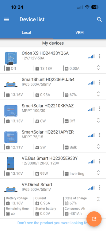 2. When I first read your post, my first comment was 🤣!!! Just search for keyword 'Victron' to find MANY upgrade threads! Here is my DIY thread, new Epoch batteries with Victron MP2 and components. We now have 7 Victron components (see app screenshot below), from the Smartshunt to Solar Chargers, to DC-2-DC chargers, etc! Adding the Victron Orion 50A DC-2-DC charger => Only a couple of Oliver Owners had upgraded to the Victron Multiplus II inverter/charger and Epoch batteries before I did ours, summer of 2024. And many have done so since. In this post Patriot shows an excellent professional installation! You have dozens of upgrade threads here you can study to make yours what you want!
