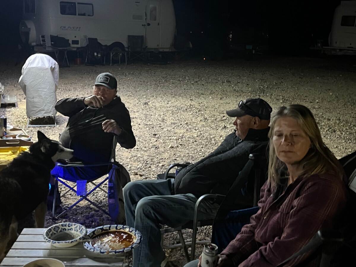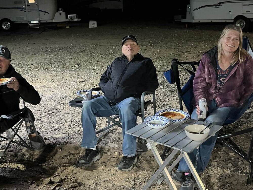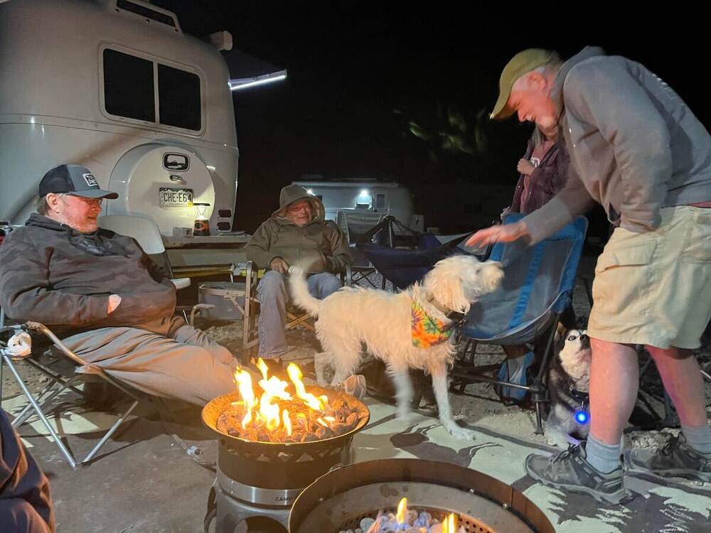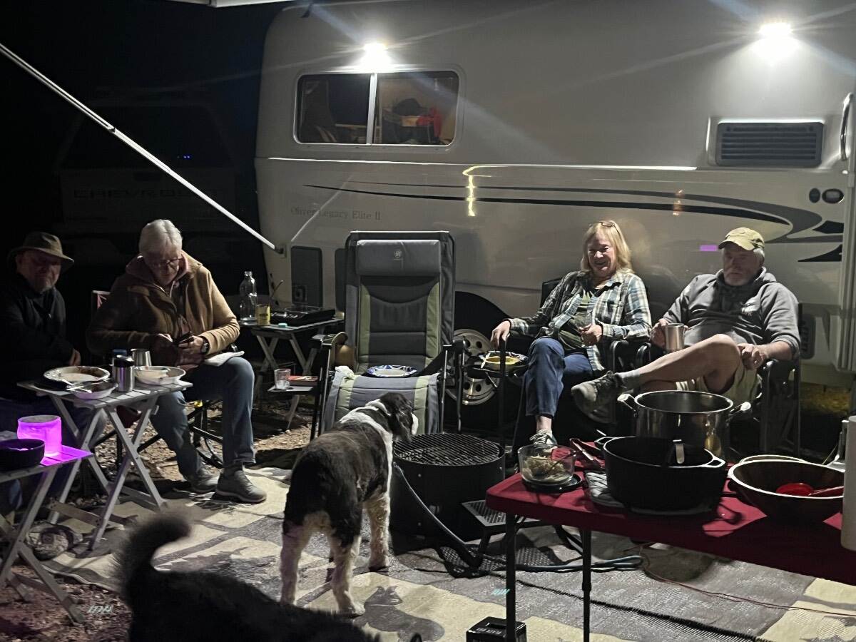 It was a great week at the Q. Thought I'd share some pictures! 😂 First couple of nights everyone was over by that odd looking trailer with all the lights (actually VERY comfortable inside), where Art @MAX Burner generally has his famous Blackstone cooking away! Wednesday night was dinner at our camp where Chris cooked an Italian feast. Pasta and meat sauce, salad and cheesy garlic bread were a big hit! 😎 In attendance were Steve & Tali, Art, Lance and Gary, Rhonda and Ruth (towing some nice older hulls). Don't forget the pups; Rocky, Oscar, Hessie and our Charley. We all made new friends when just a few hours prior Steve & Nancy arrived from northern Indiana towing Hull # 166! Barely a mention of their furnace not working and @ScubaRx was off to their rescue, removing the sail switch on their Atwood furnace which needed cleaning and alignment, soon it fired right up! Later their younger dog Buddy made a stir with the old dogs! And we kept some up past their bedtimes! 🤣5 points