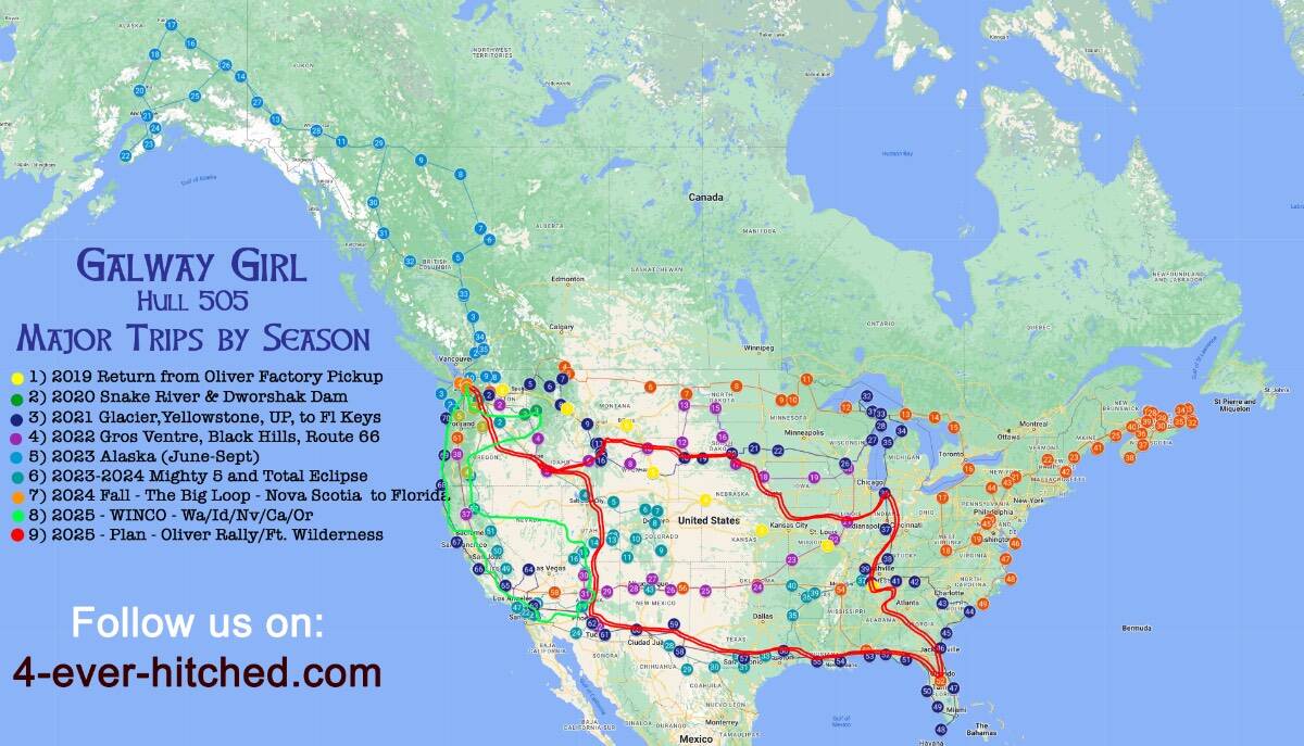 FYI We updated our web page with pix and campground maps from our Fall trip (Sept-Dec): Sept-Dec 2025 Trip on Loneliest HWY, Alcan Springs, Grand Canyon & More We've also started planning our trip (Red Lines) to the Oliver Rally in October along with stops at NP and Quilt Shops (Missouri Star) and Ft. Wilderness. Craig & Rose6 points