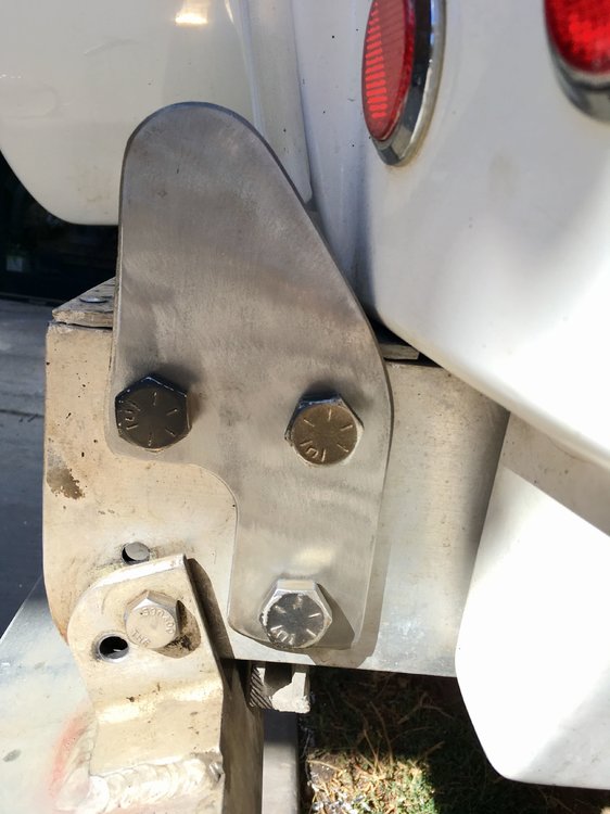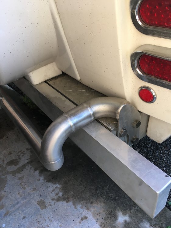 Camping in Wyoming, I met Rob & Amy, co-owners of BABCOCK METALS, of Talmage, UT. Rob is a world class welder / fabricator who does work on major industrial products and household furnishings. He also loves the challenge of creating custom designed solutions for customers' unique needs . . . such as an elegant and strong 2" receiver hitch for the back of my Ollie which allows unhindered access to the sewer hose inside the rear bumper and removal of the spare tire cover. Let me show you his creation . . . It started with two machined stainless steel brackets for the exterior of the frame, cut to permit the bumper to swing down without interference. The brackets each had three holes to accommodate a 5/8 inch hardened grade 8 bolts. Inside the frame, he added six solid blocks of aluminum which had also been drilled for the 5/8 inch grade 8 bolts. Using stainless steel curved tubing with a 2 inch ID, Rob measured the angles required to ensure clearance would permit access to the rear bumper compartment and spare tire. Finally, he made a 2" receiver, curved exactly for welding onto the stainless steel pipe. His artistry at welding is evident in the finished product. After applying a brushed finish to the exterior of the hitch, Rob installed it onto The Wonder Egg. The hitch fits the rear portion of the frame perfectly and each of the six grade 8, hardened steel bolts was snugged down with 200 ft lbs of torque. I feel very confident in the ability of this custom hitch to do the job. If you ever think that you may be traveling near eastern Utah and are in search for a hitch solution for your Ollie, contact Babcock Metals (678.480.0204) and I bet they could create just what your are looking for.1 point