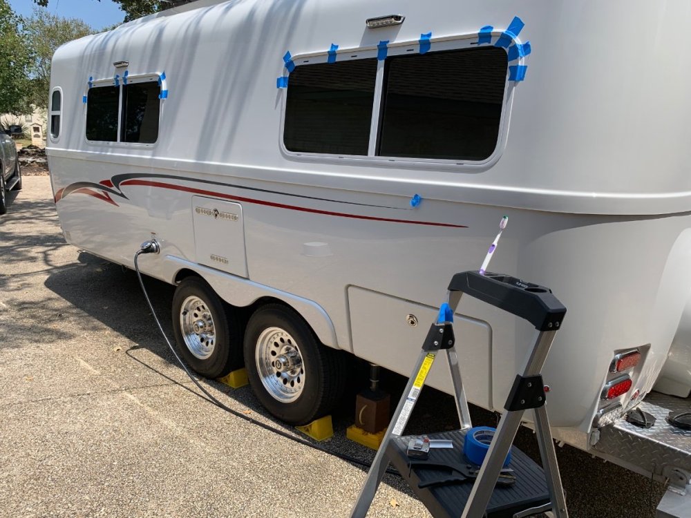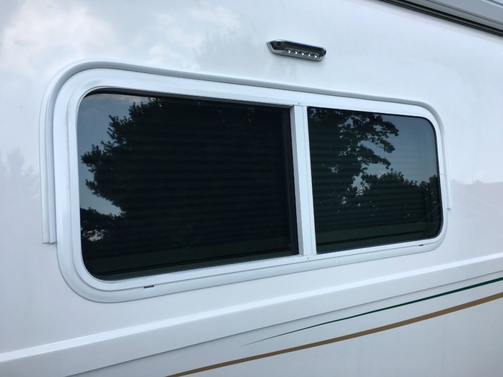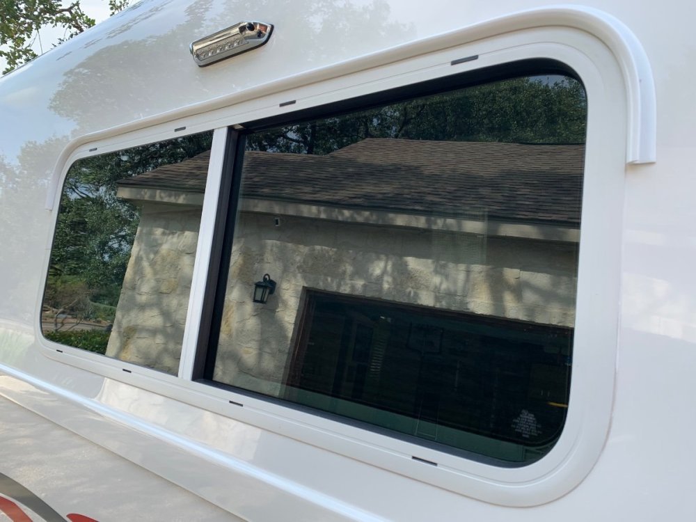 The EZ gutter above the windows was added by the previous owner of your trailer. If I recall correctly from your previous posts, you bought your trailer from the Rimer family after Ron Rimer passed away. Ron was a great guy who helped us in our decision to buy our Elite II. Ron had added that EZ gutter and during our visit with him to see his trailer he commented that fixing the lifted corners on the EZ gutter was on his to-do list. Based on Ron’s experience, when I added my EZ gutter I ran it around the top and all the way down the sides of the windows.2 points