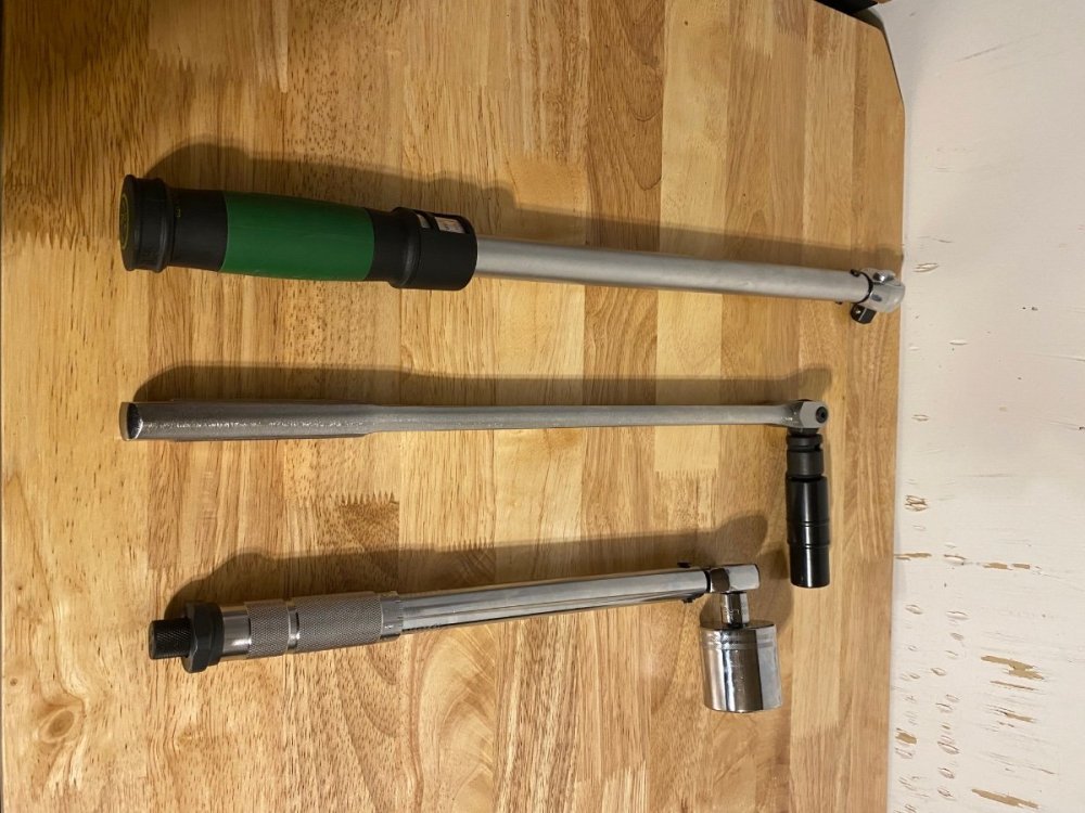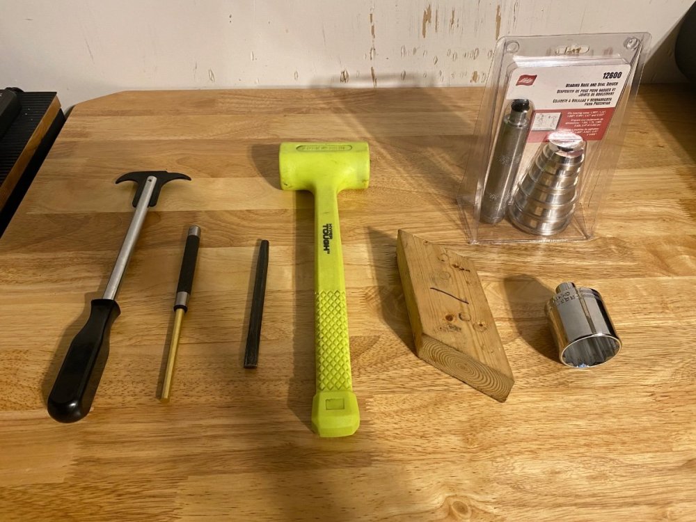 The Dexter video is very helpful. https://youtu.be/GnH-h3W9XvI As mentioned before the complete bearing sets must be replaced, you can’t leave the old races in the hub. And the seal and grease cap must also be replaced. So new bearings, seal and grease cap on each axle. Here’s the tools/etc. that I used for my recent replacement of the bearings on all 4 wheels: Breaker bar & 3/4” lug nut socket for loosening the lug nuts to remove wheel. Screwdriver to pry off old grease cap. You may have either a spring clip or cotter pin as the axle nut retainer. Mine have the spring clip that can be reused. Cotter pins should be replaced. The axle nut should come off by hand since it’s only supposed to be finger tight at final assembly. Seal puller from Harbor Freight to remove old seal. Brass and steel punches to drive out old outer races. Brakleen to remove all old grease from hub and axle spindle, and clean the inside of the brake drum while you’re at it. Also check your brake pad thickness while you have the brake drum off, Dexter says 1/16” minimum thickness for the pads. A bearing driver set to install the new outer races. A good high quality grease to pack the new bearings. A dead blow mallet. A wooden block to install the new seals. A 1-1/2” socket for the axle nut. Torque wrenches for the axle nut and lug nuts. I use two different ones because of the difference in torque settings. The axle nut is to be torqued to 50 ft-lbs. to seat the bearings, then backed off and finger tightened, then install the retainer clip or cotter pin. The lug nuts are 120 ft-lbs. I don’t have one single torque wrench that can cover that range for the axle nuts and the lug nuts, so two torque wrenches in my tool box. Grease cap driver tool to install new grease caps properly. Follow the Dexter video. And I carry all of this with me, including spare bearings, seals and dust caps, in my road tool kit, along with a heavy duty scissor jack, a full ratchet/socket set, small air compressor, and other common hand tools. Flat tires and wheel bearing failures have been common points of failure that leave people stranded. I like to be prepared. Mad Max was the Road Warrior, call me “The Road Worrier” 🙂.2 points