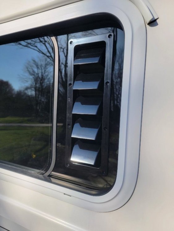I don’t even know when Airxcel (makers of the Maxxair Window/Maxx Louvered Window Vent) stopped production (maybe 2015) but I was one of the lucky ones who purchased a couple from Little House Customs for use on my Casita. Right before putting OCD for sale, I removed them for use on the ILOVHER. I consider myself lucky as there are still current threads about owners with radius style sliding windows who want the ability to open the windows in the rain for that much needed airflow. The company apparently doesn’t see the need to start production and maybe our fiberglass market is just too small to justify a rebirth. Occasionally, I’ll see a couple pop up on Ebay but they go for a mint..sometimes upwards of $150 plus shipping! I have followed the topic with interest because one of my vents is spider cracking..probably from UV exposure and vibration over ten years. It’s still hanging in there with a bit of FlexSeal tape! I stumbled across a gentleman on Fiberglassrv who was 3D printing a drop-in two piece vent in three colors and sent me info on his prototype. Here is the link to the discussion and a picture of his 3D design: https://bit.ly/3JNotT5 I was emailing him back and forth in September of 2020 but my understanding is that he’s dropped off the planet. He was charging right around $80 for one. I’m not sure how many people were able to purchase one but I never did. I decided to put my mod brain to work and came up with the design below. I will eventually make another one for the curbside. I really enjoyed the process and it wasn’t terribly expensive to do! (about $50) in materials. PM me if you’re interested in the material list.. The vent is made out of a black boat louvered ventilator. I got the idea from a friend who had something similar on the hood of his ATV. I used a piece of ⅛” smoked plexiglass and the window screen as a template. The plexi was cut with a standard Dremel tool cutting wheel. The edges were trimmed with rubber edge trim and the vent is seated with a waterproof nanotape. The only downside is having to install the vent when it’s raining outside and removing it before travel…that’s where the Maxxair vent had the edge! You simply slide the whole thing upwards into the upper track and it fits snug and water-tight. The other bonus was that I didn’t have to add screening as the current screen still closes with it in place. This was really fun to do and I’m super stoked to test it out!8 points