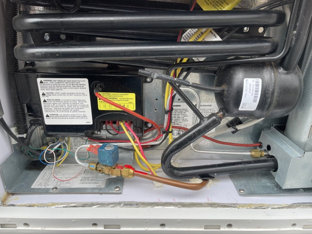 Found the fan on my 2021 Norcold. You can’t see it by opening both exterior vents. I needed to use my phone to take a picture from bottom looking up. It would be a ***** to change if needed. I also installed a piece of rubber between the 3/8 gas line after bending in Down a little it’s was rubbing on the black hot gas line. Don’t need a leak on either system.2 points