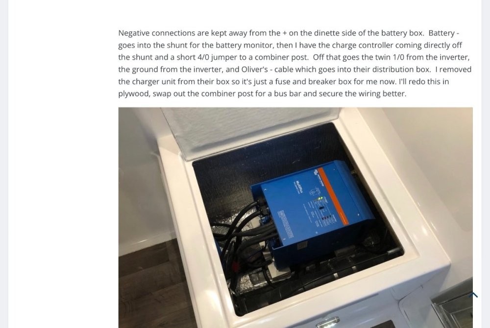Since I didn’t do the installation, I don’t have any background on what Victron recommended for the mount. It is mounted horizontally under the driver side bunk, along the aisle. BTW, ours is a 2000W.2 points