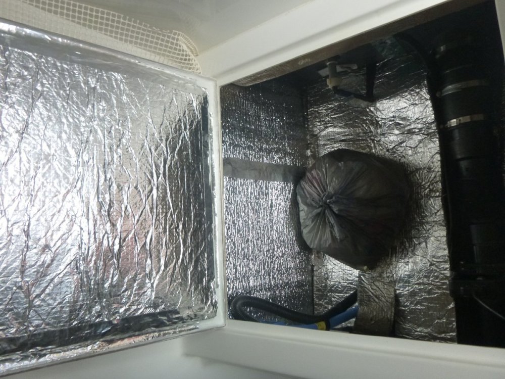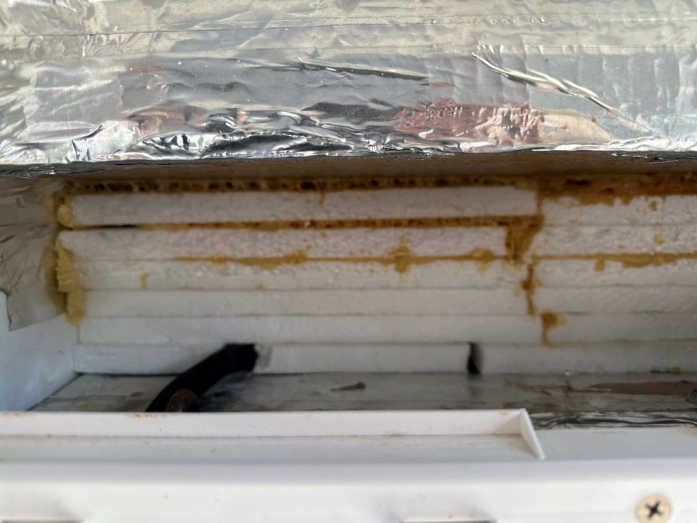 Assuming you are going to reinstall the fridge, maybe use some real insulation like the pink Owens Corning 1” foam board, that is rated R5. I am not sure if regular styrofoam has that high an insulation value. The pink stuff is fire retardant and will not absorb moisture at all. Lots of aluminum HVAC tape will hold it in place and hopefully seal the gaps. The idea is to stop outside air entry. I sure would be reluctant to foam it back like yours is now, with the spray stuff…. https://www.homedepot.com/p/Owens-Corning-FOAMULAR-NGX-F-150-1-in-x-4-ft-x-8-ft-SSE-R-5-XPS-Rigid-Foam-Board-Insulation-20WENGX/315197840 You can also use that board to insulate bare spots like under the bathroom vanity. … https://olivertraveltrailers.com/forums/topic/9039-how-to-bath-sink-compartment-mods-duct-rework-insulation-disconnect-flush-line/ Please start a complete thread on your job, I don’t recall seeing one for the Norcold unit. Good luck! John Davies Spokane WA1 point