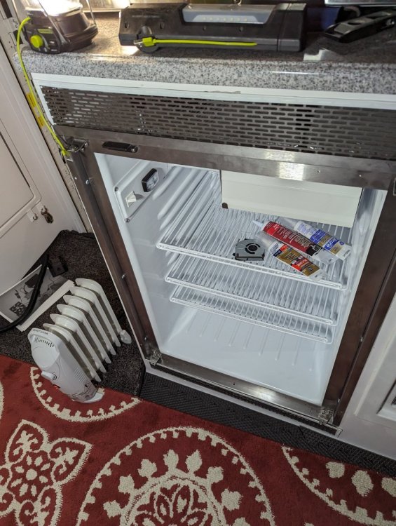 Just Finishing My install of Nova Cool. Wow what a workout. Thanks for all of input. My biggest issues is getting it leveled in existing hole. 2.5 months of hitting it on the weekends. Thanks to all who have contributed. I closed off all my holes and purchased table on bottom hole. I know how John D. felt after installation couple times. Here are couple quick shots. Fridge door came damaged from nova Kool, box was unharmed. But door tore up on bottom. Definately a workout. Tore up old fridge to get out and put back together if anyone one needs old 3 way fridge . Give me a jingle. Used one season. Thanks for everyones input.3 points