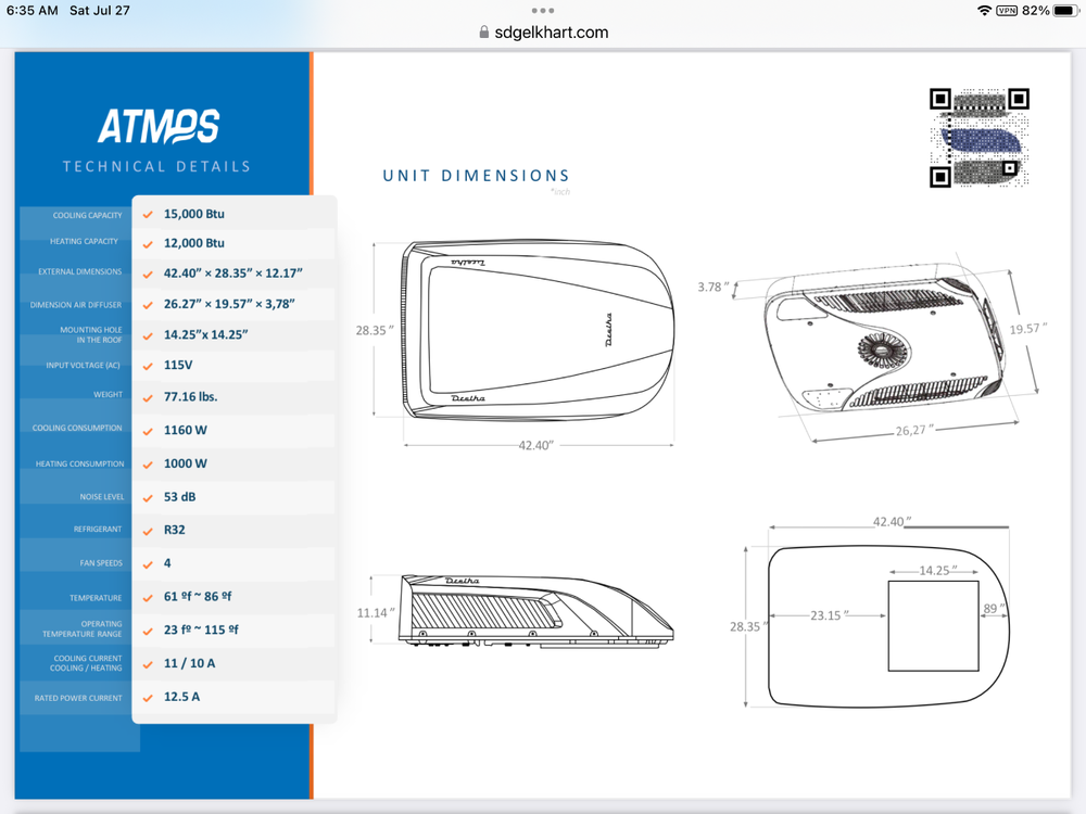 This was asked and answered in another thread titled, "AC upgrade conundrum." At that time, I checked and the Atmos is spec'd at 0.9" taller than the OEM Dometic Penguin. Given OTT specs the EII as "Outside Height To Top Of A/C: 9' 8" call it 9' 9" with an Atmos which should not make any real difference, even for a 10' garage door.1 point