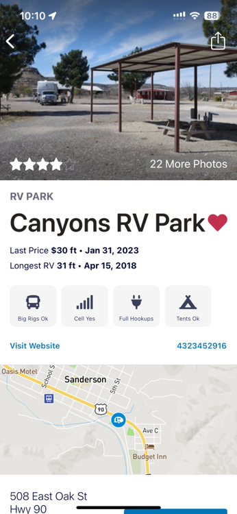 Update on our return trip… Given the goal of staying off Interstates, we wanted to see South Texas w/o I-10 travel. Left Inks Lake for lunch in Kerrville and spent a night in Bandera at Antler Oaks lodge. They are $59 plus tax! But with a soft sales call, I talked them into $40 cash and we would not hook up, no costs for them. The RV park was nice enough, but one tenant scared us. They were up all night, lights on at 2AM, where 4 pickup trucks parked around their large travel trailer. One thing my Dad told me, “Nothing good happens after midnight.” I’m sure they were involved in trafficing or drug running. We stayed quiet pin the trailer and they kept me awake most of the night. Thought to head straight south to Uvalde. The largest town out that way and they were in the news for a major school shooting a couple years ago. Uvalde also has the cheapest fuel around. Another part of planning is where to buy fuel. We use Gas Buddy and with the map view you can look ahead at prices along your route. Highest gas price we paid was $2.99 for diesel and the lowest was $2.79 at H-E-B Uvalde, $2.43 for regular, nice! Wanted to see Del Rio, stopped for lunch there and had many great views of the Amistad National Recreation Area. On our route west. just woke up in Sanderson TX. Not much of a town or RV park. Got another $10 discount for my “no hook-ups speel” some light road noise and we slept well. i was too tired yesterday to push another 2 hours to Davis Mountains SP, so will leave for there as soon as I stop typing this! Looking forward for a few days there!2 points