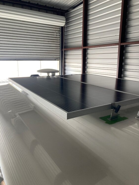 Started installation of solar on Hull 484. Little bit of background information. I purchased a 2019 LE II in April 2024. Although the trailer was not ordered with a solar package it was prewired for solar by OTT during the build and also had the aluminum mounting plates on the roof under the fiberglass. Thank you to owners @AndrewK and @carnivore that have completed this before and posted on this forum. @carnivore ran through his install over the phone with me and even provided me with spare mounts he purchased from AMSolar during his install. I would not have had the confidence to start drilling holes into my roof to locate the preinstalled wiring without these owners doing it before me. Panels are mounted, just need to complete the wiring on roof and seal around the mounts. Mounts were secured with VHB tape and screws by drilling and tapping into the aluminum plates. I went with 2 - 200 watt panels from Rich Solar for 400 watts total. Ordering a victron solar controller and smart shunt. Will post update when the electrical side is complete.1 point
