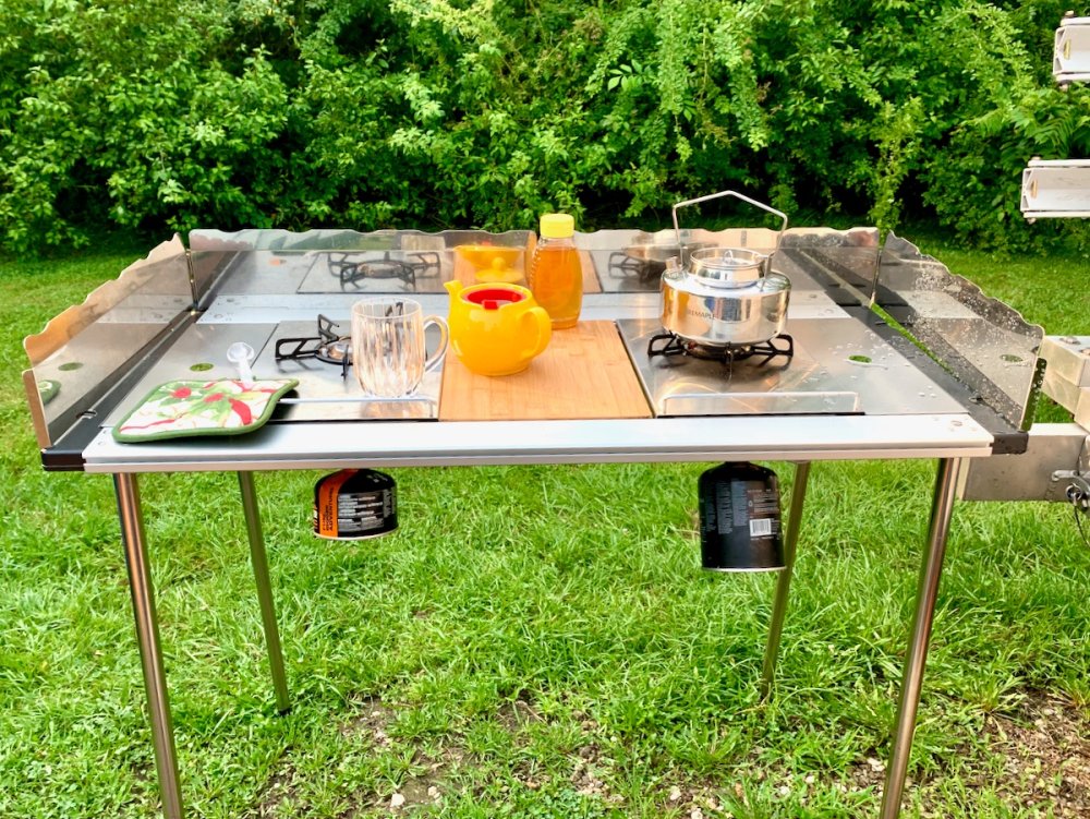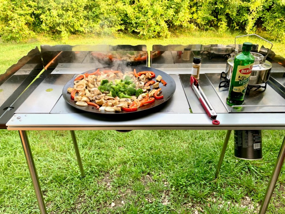 The BS 17” griddle has served us well and can be used with the Oliver QC ports with a simple adapter. I have a 36” commercial grade flat top at home and there is nothing cooked on it that can’t be cooked on this smaller griddle when camping. Perfect for 2-3 person food preparations, compact, carry bag/griddle cover, easy to clean, fun to cook on, ‘nough said!1 point