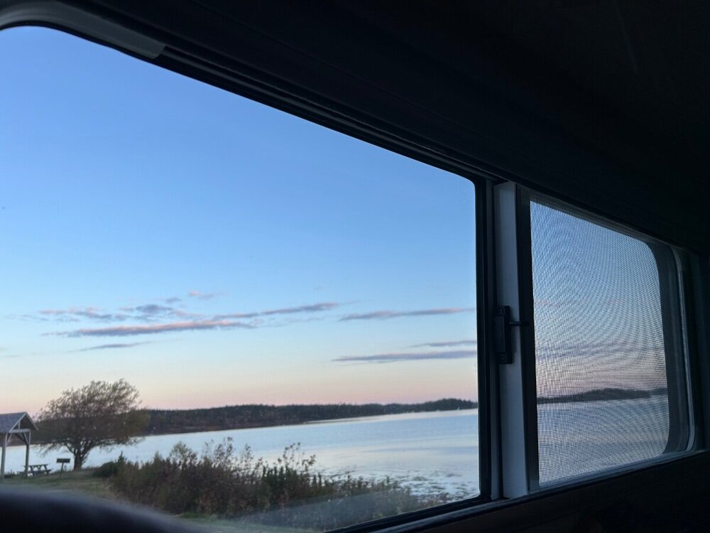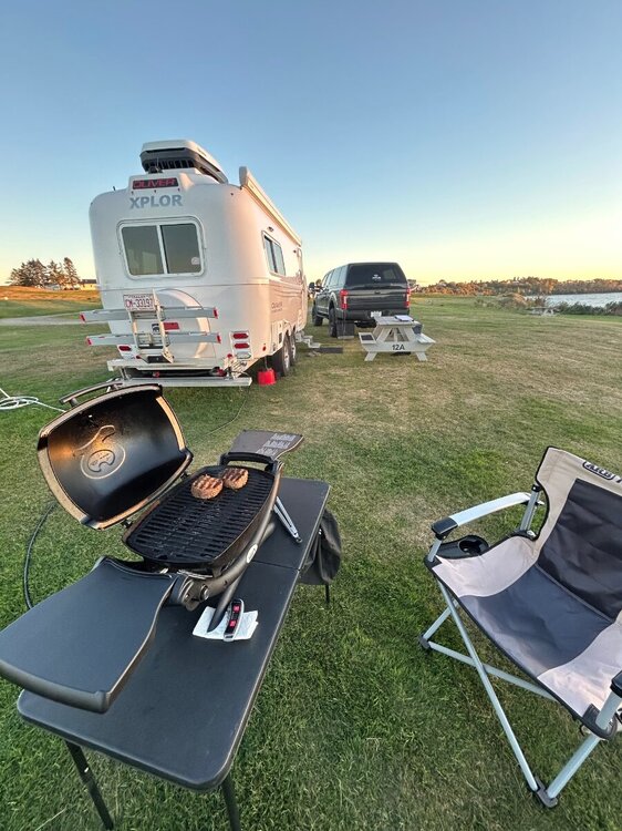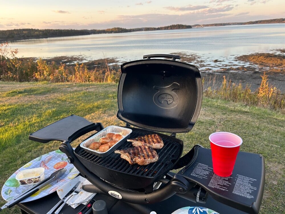 We like this place so much we extended for a week. If we were any closer to Johnson Bay we would be in the water 😄. We are looking at Canada. The waves crashing on the shoreline here make it pretty dreamy when drifting off to sleep with the windows open. Our Weber Q1200 busy with the beast. Plated..at 138d West Quoddy Light house which was freshly painted. It can be seen 20 miles out at sea. IMG_4206.mov1 point