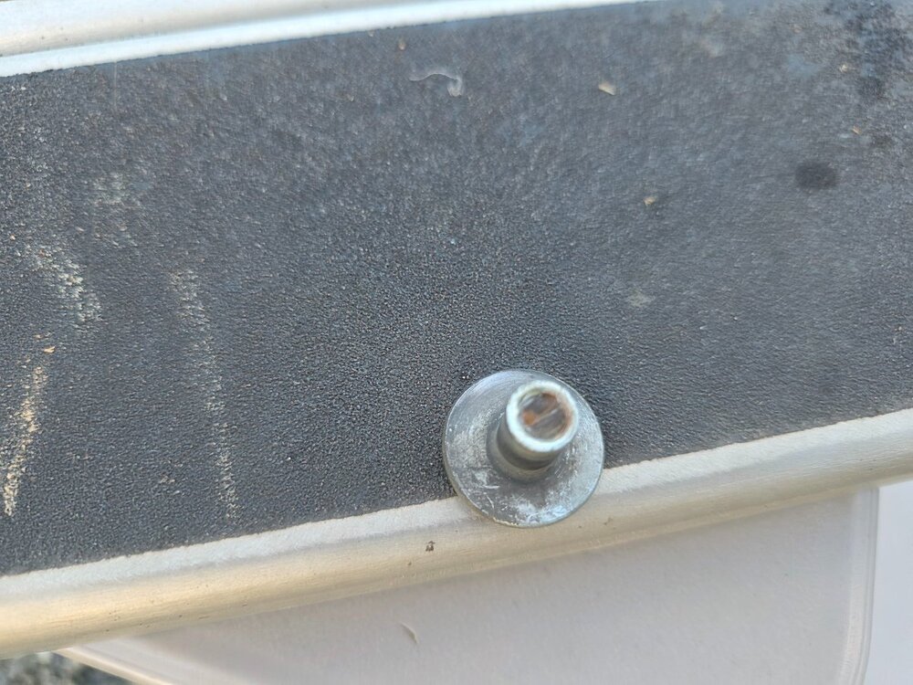I removed ours when I worked a major overhaul on the steps, sanded down the aluminum and scraped the old tread out to replace with 3M new. Surprising one came lose since ours where in VERY tight. On one side the nut end mushroomed and would not fit into the hole again, so it couldn’t be reused. I just used a standard short bolt same diameter with locknut (not wanting to wait and pay for parts and shipping for such a small item). I have a list of small things like this, that if I ever truly need parts from OTT, I’d get these too. They are nice bolts, how they fit with no threads showing!3 points