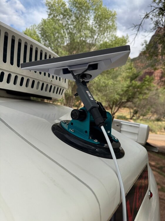 All neat and creative ideas on how to mount the mini. So far after 100 days and 12,000 miles travel and use of our Mini, I have yet determined a permanent mounting location that would allow the Mini to have a clear view north without obstructions. For now, I will stick with the plug it in and lay it on the table mount. 😄 I may still consider a flag pole mount, for now it just much easier to set up for an unobstructed and clear view north. 🤷♂️1 point