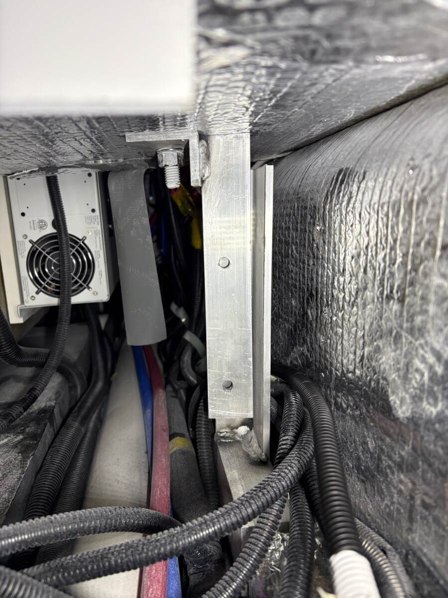 We only recently upgraded our springs and we’ve been at 50psi in our tires for many years. I think the heavy AGMs and many miles is at the root of this issue. There are a number of rivets all around the box that were all popped/damaged/pulled out. It doesn’t seem that that could happen all at once, but probably happened over time and miles. Our lithium batteries, installed 4 years ago, are 1/3 to 1/4 the weight of the AGMs. The Oliver response to my trouble ticket was to check and send pictures of the brace inside the trailer. I did and the response was that I could probably use a good adhesive to repair it since the brace holding up the box looked good. I didn’t like that answer so I asked to be sent over to service for some advice. Mike S in service said they use rivets to repair and also inspect the support bracket. I’m debating whether to try this myself or just make a trip to TN. Unlike Galway Girl, my bracket only has one bolt and it is in an adjustable slot. Other side: It’s interesting that the box is leaning out from the trailer and the bolt is at the bottom of the slot. When I pull the battery tray out, the box moves out more but every so slightly, less than 1/16”. I would think that the sag would be the other way around, leaning into the trailer since the weight is over the support more than 99% of the time.2 points