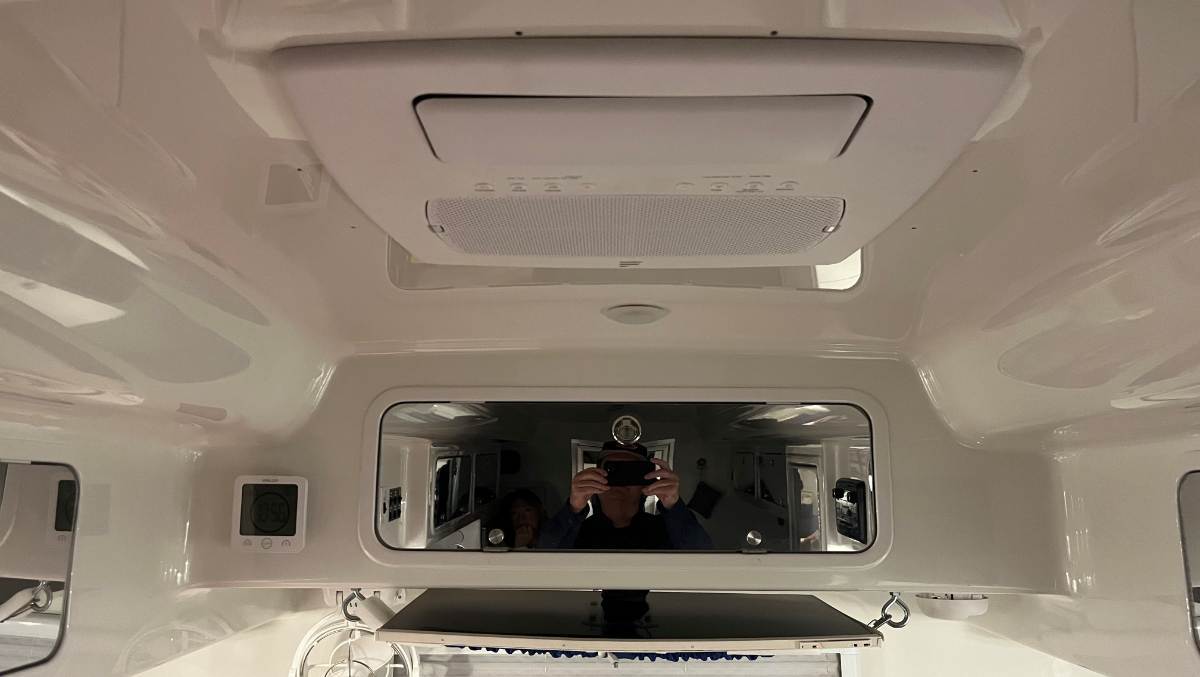 It was mounted using an additional extension piece of “starboard” backing plate (as mentioned in a previous post) glued in with a very very strong industrial grade marine grade fiberglass adhesive. I do not know the name of the marine grade odorless adhesive that was used. I do know its used in Marine grade installs. I opted not to have my installer drill through and bolt the backing plate through the fiberglass. My concern is the “hanging weight” on the bolt through the fiberglass from the 3000W inverter/charger could/would eventually cause the fiberglass to star or splinter and eventually just crack. In my experience and discussions with Jason E at Oliver service over the years, drilling through the fiberglass is not at all recommended. So drilling just was not something I was willing to risk. So far my Victron 3000W inverter converter is still very secure.5 points