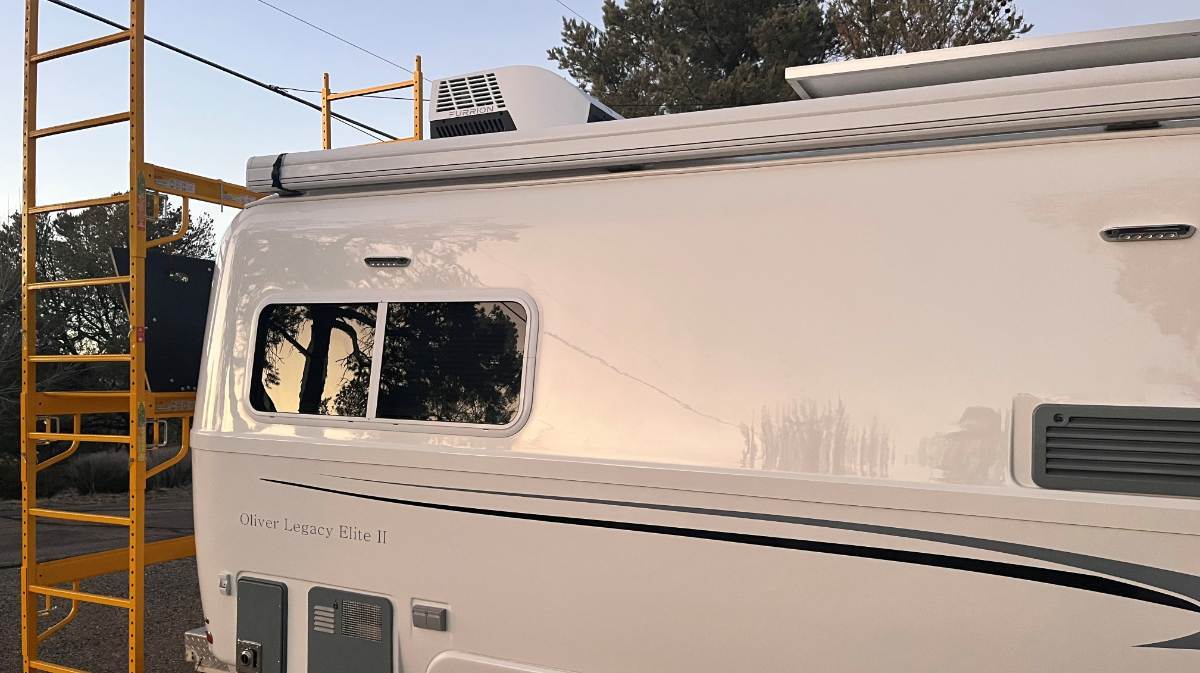 She's up top and installed, running ever so quietly... I'll write more on the installation soon and total height measurement. It does appear a bit tall, though I took the picture from higher ground. I ran the furnace during the Bears game (love when the Packers get beat, it's so sweet)! Then Chris and I went out to check on the Oliver... The cabin was at 74F and with the Chill Cube set to 60F it cooled quickly (but true testing can not be accomplished during the winter)! When it kicked in, it started drawing only 2A, OMG! We're always on inverted battery power, no shore line. it took a few minutes to ramp up. Highest reading was 18A. The Dometic Penguin II needed over 150A to make that freight train sound and would take 2-3 times as long to cool (how does that work)? I didn't measure total usage this time, but at the high draw of 18A (which sounds crazy, but it would certainly draw more on a hot summer day) I could run this A/C for 50 hours! I'm thinking with 900 Ah LiFePO4 batteries we will be able to run this on at least 3-5 hot afternoons when boondocking, get a hook-up after a week out. Out west you rarely need to run A/C overnight. A/C in the afternoon, furnace by dawn, so yes if they ever sell an upgraded model with heat pump and Bluetooth it would kill the market. Then it settled down at 10A, in AUTO mode the fan was running a low-medium speed (as recorded, run movie). The fan can run even slower/quieter! The huge evaporator fan in the Non-ducted version of the Chill Cube is the secret, and it's what sold me. When turned off the oscillating vent goes back to closed position, love how the air handler hangs <1" below the ceiling! I'm 6'2" and when the vent was full down, standing tall it was still 2-3" above my head. Love how it pushes a lot of air up and down the Oliver hallway but does not blow directly on the beds. Living in the Southwest, and especially after living a few years in South Florida, Summer has become our least favorite season (more so for Chris). I have a feeling that Summers in the Oliver are going to be pretty decent running this A/C unit! 😎 Furrion Chill Cube Running.MOV4 points