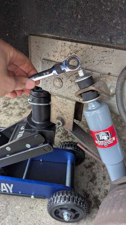 Go figure! Visual inspection of shocks will only show leaks. You need to remove them to test them. Good for you Chris! I've never found a creeper that works for me. Been scooting and rolling my body on the concrete garage floors for decades! I did not have ratcheting wrenches most of my life, but 3 years ago I found this awesome set on a good sale. Nice jack! 😎 https://www.homedepot.com/p/Milwaukee-144-Position-Flex-Head-Ratcheting-Combination-Wrench-Set-Metric-15-Piece-48-22-9513/313671329#see-more-details3 points