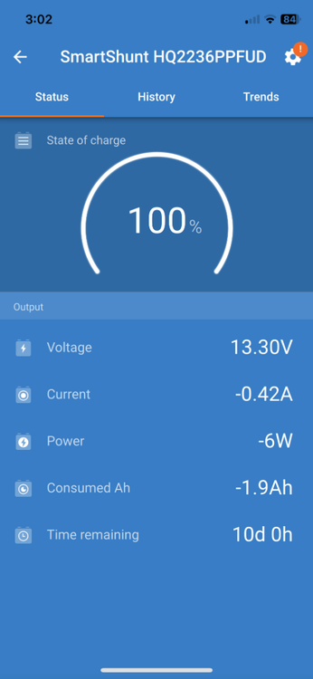 I decided to chime in on this because I don’t think you’re missing anything, your discharge rate is perfectly correct! All the given advice is good, but it’ can be a bit miss-leading to fully understand whats going on. I hope to provide a better explanation, and show you a simple and very accurate way to check your “parasite” loads, which I’ll refer to as normal “stand-by” loads. Your 390 amp hour battery with a daily discharge rate of 3% equates to a loss of 11.7 amp hours over a 24 hour period. This further equates to a stand-by load of 0.48 amps, which is not overly excessive considering all the electronic devices in the Oliver. Devices with memories, remotes, touch lights, rain sensors, USB ports, electronic boards, etc., can each draw milliamp currents even when turned off, and they do add up quickly. I took some current readings from my own trailer to show you what I mean. It’s the same year as yours and it also has a 390 amp hour battery. Remarkably, the values add up to exactly the same current as your calculated load. But more importantly, it shows that there is no single extraordinary load: Fuse 2, Various electronics = 0.117 amps Fuse 4, Furnace = 0.012 amps Fuse 5, Main lighting = .003 amps Fuse 6, Fans = 0.016 amps Fuse 7, Water heater = 0.113 amps Fuse 8, Radio = .204 amps Fuse 9, USB outlets = 0.007 amps Fuse 10, USB outlets = 0.009 amps Total = 0.481 amps These measurements were done with a precision multimeter having a resolution of 3 decimal points. My Victron shunt has a resolution of 2 decimal points and it showed a lessor current of 0.42 amps. My Clamp-on Amp Meter has a resolution of 1 decimal point, and it showed a higher current of 0.5 amps. This demonstrates how subjective and inaccurate some of these measurement methods can be when dealing with such small milliamp values. Another potential misconception is that the Lithionics BMS App will provide the overall charge and discharge values. It’s only true to the extent that it provides values for the battery selected, but not for each battery combined. For example; the 390 amp hour package consists of three 130 amp hour batteries. If the overall load is 3 amps, then the App will show each battery discharging at 1 amp. Additionally, it’s only accurate to 0 decimal points so it won’t show anything less than 1 amp. This is another good justification for installing a Shunt. There are a number of ways to measure stand-by or parasite current, but the easiest and most accurate way is with an inexpensive Multimeter through the fuse box. It will show the load of each circuit, but not each component on the circuit. Thats okay because some of the individual component loads are too small to be accurately measured anyway. Caution: When using the ammeter function, the meter is in-line with the circuit. This means that the current is running through the leads and meter. So don’t use it with loads greater than it’s rated maximum current, which is typically 10 amps. Before testing, make sure that everything is off including the inverter/charger and solar (Solar switch is in the street side overhead cabinet.) Make sure shore power is unplugged too. Pull each fuse one at a time and the red LED “blown fuse” indicator will light-up if there is any load. Put your ammeter leads on each leg of the fuse socket and read the current. Add up the values and you will have an accurate overall stand-by load. FYI, the inverter/charger does not go through the fuse box, but it will add another 0.2 amps load if left on. I keep my trailer undercover without shore power and the batteries also discharge rather quickly. In fact the shunt screen shot below shows that it will discharge in 10 days. I considered adding a battery master switch, but it wasn’t a viable option for a number of reasons which is why I believe that Oliver doesn't install them either. I ended up getting an auxiliary solar panel, with charge controller, and I mounted it on the roof to keep the batteries at 100%. It was better than running an extension cord and risking complete discharge mishaps. Hope this helps Cheers, Geoff12 points