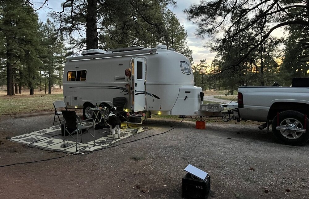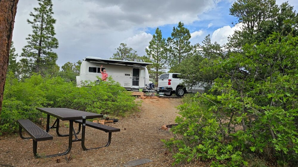 Got back from dinner and the Host had changed the entrance sign to “FULL.” Got here at 12:30 and after we quickly setup camp, a neighbor stopped by and said, “You got the best site, #12. A trailer pulled out just before noon.” We’re sitting at 9,550 FT and not a bad view for our last two nights before heading back to AZ!11 points