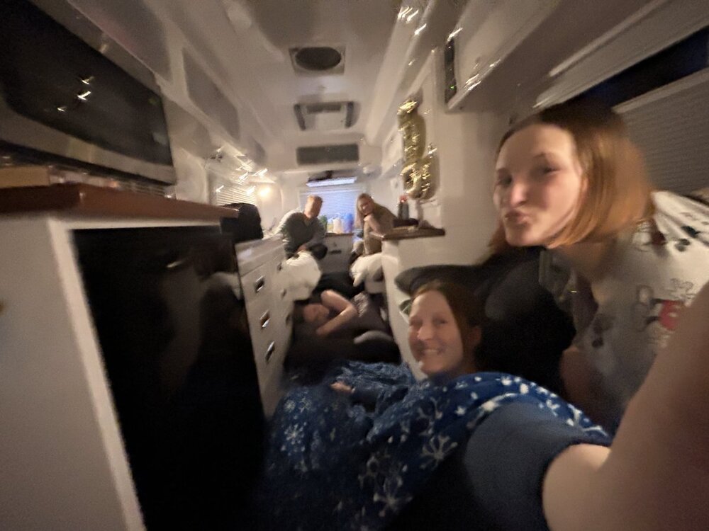 We recently returned from a week-and-a-half-long trip through Glacier and Banff for my 50th Birthday. Farily last minute all 3 of my girls decided to join us on this trip. This created some logistical challenges we had to figure out. We got it all worked out but it left us with one night where no one had a place to stay except in the Ollie. That meant all 5 of us sleeping in the trailer! Who says it is just a couple's trailer, bring on the family camping 🙂 Not a great picture but had to share. The girls were great sports about it and we had a fun night hanging out and watching a movie. We ended up having a wonderful birthday trip through Glacier and Banff. It was our first time in Banff and it did not disappoint. An amazing hike up Avalanche Lake in Glacier. And then we got an amazing site in Banff Tunnel Mountain II Lake Louise did not disappoint either. We also had a great time talking with our neighbor, who was headed to Alaska in their EarthRoamer (pricey little machine)! Overall, an incredible way to celebrate a 50th birthday!16 points