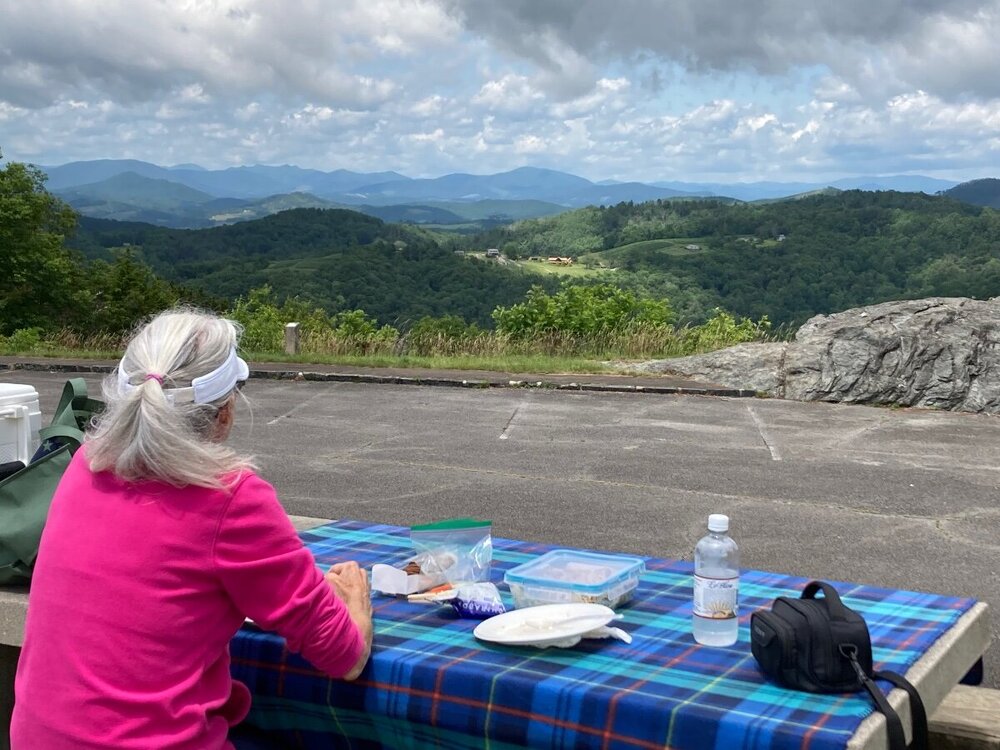 Doughton Park NC on the Blue Ridge Parkway. We head to the BRP to beat the heat this time of year. After the hurricane last year, many areas are still closed, but repairs are being made and areas slowing reopening. No electricity or water at the campsites but Ollie handles it fine with a portable solar panel. Directions to Doughton Park, take Rt. 21 to the BRP to the Park. Doughton Park Picnic Area: Air Bellows Overlook:11 points