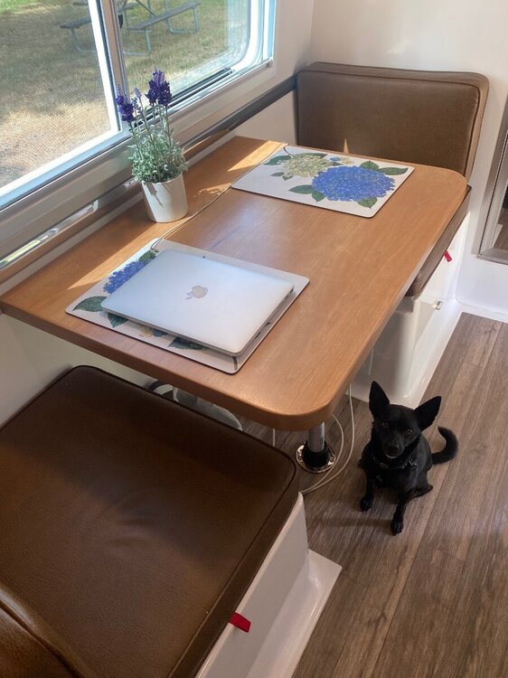 Just before leaving on our current trip, I covertly made a new cherry table and installed it to the surprise of wifey. She had wanted to keep the Oliver’s stock modern look, which is understandable considering that the house is already full of custom wood pieces. But after using it on this trip, we both absolutely love it! If I were to choose to have only one Oliver modification, it would be the enlarged table! The original table was small to fit between the seats for a third bed, and it is barley big enough to fit much more than a two piece place setting. The new table is 28” x 37” (about 10” longer and 5” wider) and it makes a huge difference to have the extra tabletop space. We can now fit the computer and our place settings. I realize not everyone has access to a wood shop to build such a table, but there are consignment woodworkers just about everywhere that could easily do it. As wood working projects go, it doesn’t get much simpler to joint and glue planks together and sand them flat. Many hardwood lumber shops even have wide belt sanders available to flatten tabletops. You could even have a lumber shop cut a nice piece of hardwood plywood, round the corners with a saber saw, and dress the edges with real wood self-stick or iron-on edge bands, just like they do for kitchen cabinets. I recommend experimenting with a cardboard template to determine the optimum size to fit your body types. I also remember a guy who advertises wooden accessories on this forum who might sell larger tables. Anyway, it’s a worthy project or expense to think about! Cheers, Geoff11 points