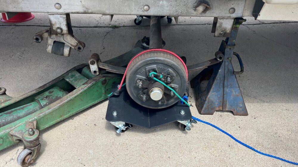 Geoff, I thought some regulars here may notice! I did use jack stands at the fronts of the steel frame members, took them away for the picture! 🤣 I have the jack stands back under the Oliver overnight in the same front positions so the weight of the Oliver is spread over 5 points, sitting nice! With the Alcan leaf springs, I purchased everything new from them, HD shackles and new wet bolts. You may have to remove your wet bolts, the ones not accepting grease, and clean the dirt out of them. After removing ours today, they do get dirty inside! After 25K miles? It certainly could be time for new wet bolts and bushings. After 2 hours cleaning up our Dexter E-Z Flex equalizers, I found the main center bushings cock-eyed and heavily worn, the end bushings for the shackles also a bit worn. After cleaning, the center bolt sleeves just wobbled inside of the bronze bushings. I would not have known this without removing them and fully cleaning, disassembling and inspecting them. I need to replace them, but cannot wait for parts now with work in process. I have no idea total miles on our hull. Good to get a fresh start after 10 years. I've got a whole lot more to write about soon!11 points