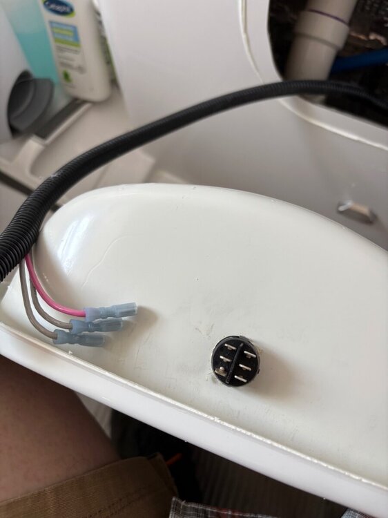 We were on our first long trip consisting of 2 to 3 months in the Ollie ( mostly Boondocking) . We were about 2000 miles from home in Billings,Montana and had stopped in a parking lot for lunch. I went to wash my hands and the water pump wouldn’t work. I noticed when I put pressure on one side of the switch in the bathroom it would pulse on like a momentary switch. I removed the screws from the bathroom caddy and carefully scored the caulk. When I removed the caddy all the wires fell off the switch. I had no idea which color wire went where. After a call to Oliver and with their help and research I used a pair of pliers to gently tighten the wire connectors and pushed them back on the proper spade. The red wire attaches to the center spade on the right side and the grays on the outside spades. I have two pictures that show the switch. Hopefully this post will help someone who might experience the same problem.11 points