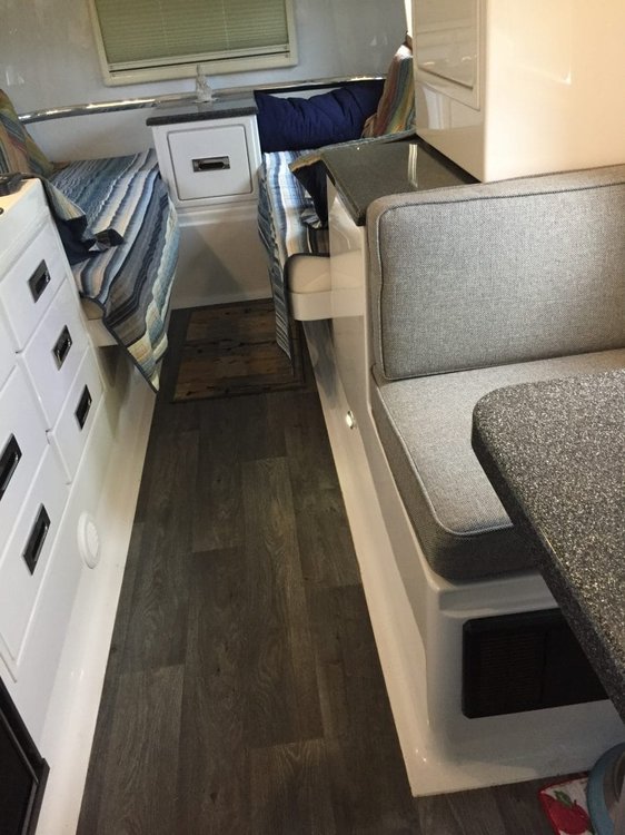 We thought that we would order the Seagrass but changed our mind after getting the samples via snail mail. We didn't like the texture--kinda gummy and thick, as I remember. We ended up ordering Canyon Aspen flooring and are happy with it. We decided to go with a black and grey theme overall: black fiber granite (Dakota) and Tuxedo Grey cushion fabric, along with gray (American spelling) awning and black and gray graphics on the exterior. We are happy with how the Canyon Aspen blended in with this theme. However, I just looked on the Oliver site and did not see Canyon Aspen as a choice. perhaps it has been discontinued.