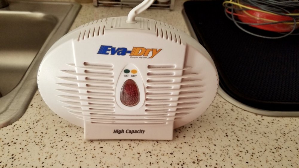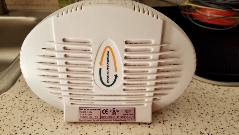 Made me look🙄, haven’t seen anything like that thankfully. This is the dehumidifier I keep in the trailer and it only needs electricity to dry out the beads inside. When the beads turn green they are wet and need a drying cycle. Mossey
