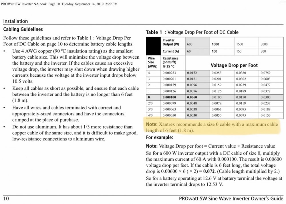 According to the Victron installation instructions, the battery negative wire goes directly to the shunt and it is the only wire connected to the negative side of the battery and the battery side of the shunt. What size wire you place between the battery and the inverter is determined by the voltage loss per foot of the connecting wire. Since Xantrex specs a 0 gauge wire 6 feet or less, the stock 4/0 wire is overkill. So you can connect the stock negative wire to the battery side of the shunt and connect the other side of the shunt to the inverter with 0 gauge wire and meet Xantrex specs. It wouldn’t make any sense to reduce the size of the stock 4/0 unless you were really bored or wanted to reduce weight. And you might want to reach out to AndrewK via PM. He has helped multiple OTTO's with their BMS installs. Mossey -