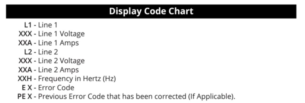 Hello Liana. My 2018 OE2 is the same model year as yours (Hull 342). Your inverter display is saying you have no 120 V power. Which one do you have? So first lets look at the power supply into the trailer. My assumption is that you do not have a multimeter. A. Take a 120 Volt appliance that you know works and plug it into your home or RV park outlet. This is just to ensure you have 120 V power there. B. Hook up your Shore power cord to the verified power source. On the trailer end there is a small LED light. If you have power to the cord end at trailer, then your cord is good. Connect it to the trailer. C. Now open up the street side bed and check the Progressive Industries Surge Protection System for power status. It looks like this. The small box is where it will talk to you. Looking at the small display LED,s here are the Display Codes. You should have power here. Advise if not. Advise if you have a display code. here is the chart. If you have power to the PI smart surge protector, then next step is to go to the breakers under the dining table, aft end. Check the 20 amp breaker. Turn the breaker OFF, and then reset it. Did the breaker imediatedly trip? Is it "Soft"? If you have power into the panel, cycle on the Air Conditioner. did it work? IF yes, you have power at the electrical panel. Hence likely is a bad 20 amp breaker to the GFCI or the GFCI itself is bad. Let us know what you find out before we go to Phase II. Geronimo John