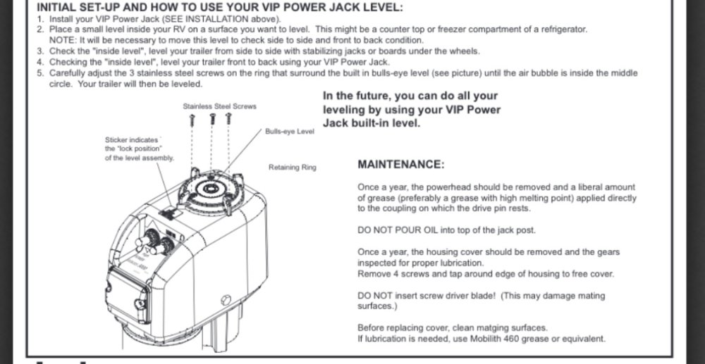 Like John, I’m also a big fan of Redline CV-2 grease, and I use that for my annual Ollie wheel bearing maintenance. But with the jacks, considering the pain in the a** it is to clean out all of the old grease from the gear drive mechanism, plus the very limited running time that the jacks actually operate (only a couple of minutes total run time per year for the jacks, compared to wheel bearings that see many many hours of high speed, high temperature and high load), I just used the grease recommended for the jacks (packed well) since mixing different types of grease isn’t recommended.