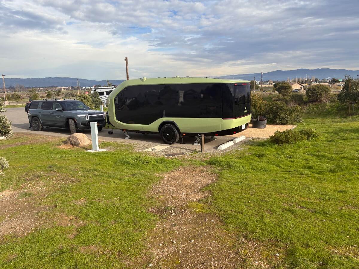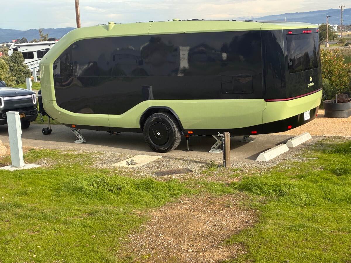 Pulled in to Dumbarton Quarry Campground (great place to stay if needing a place in the east bay / San Francisco). A Rivian pulling a Pebble Trailer pulls in. The driver un-hitches the trailer and uses his I-Pad to back/drive the trailer in place. Next the leveling jacks automaticly lift the trailer off the ground and self-level. I spoke with the owner and this is the first shakedown night from the factory in Fremont, Ca . The owner said he should get a range of 200+/- miles with the Rivian/Pebble combo. The Trailer motors are said to add about 100 miles to the Rivian's range vs pulling a standard trailer. I have to say it's very cool and makes our Oliver / F250 look and sound like a dinosaur. Regardless of how cool, this guy is way braver them me. I like being able to carry a couple of fuel cans for a bit more range (more than double the Riven/Pebble combo). We need early adopters and I'm not that guy. I wish him the best. Yes, the Pebble is very cool.