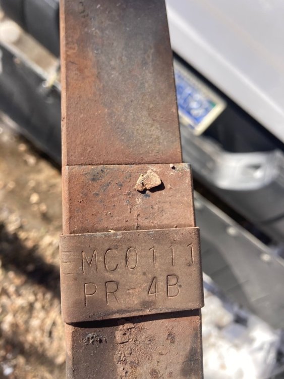 I can confirm that these measurements match the OEM brand/model spring specs for Hull #898 as well as match the published specs for the replacements spring brand/model provided by Oliver Service for my trailer. I encourage owners to confirm the specs of their OEM springs to know what they are replacing before proceeding with replacement of any part as we know certain differences exist between out trailers based in hull# and date produced. My OEM Spring make/model was conveniently stamped into the retainer band towards the end of each of my leaf springs (see pic). From this info I did a google search and found the specs. The springs installed at the factory on Hull #898 were made by EMCO and are model #PR-4B. The specs match what Steve provided above. Added to the specs Steve provided is the bushing spec provided by Oliver. The bushing is inserted into the spring eye and our wet bolts ride inside of them. The specs for these bushings (whether plastic or bronze) is 1.75”L, 11/16 O.D.(outside diameter) and 9/16”I.D.(inside diameter). It should be noted that the bronze bushing on the ALCAN springs is thicker walled than standard such that while it still has a 9/16”I.D., the spring eye into which it is pressed is larger than 11/16”. The 9/16”I.D. Of the bushing is important on these metrics as our wet bolts (which are 9/16” must fit inside the bushing eye) I hope this makes sense. I have attached a pic for comparison OEM spring in top, ALCAN on bottom. -