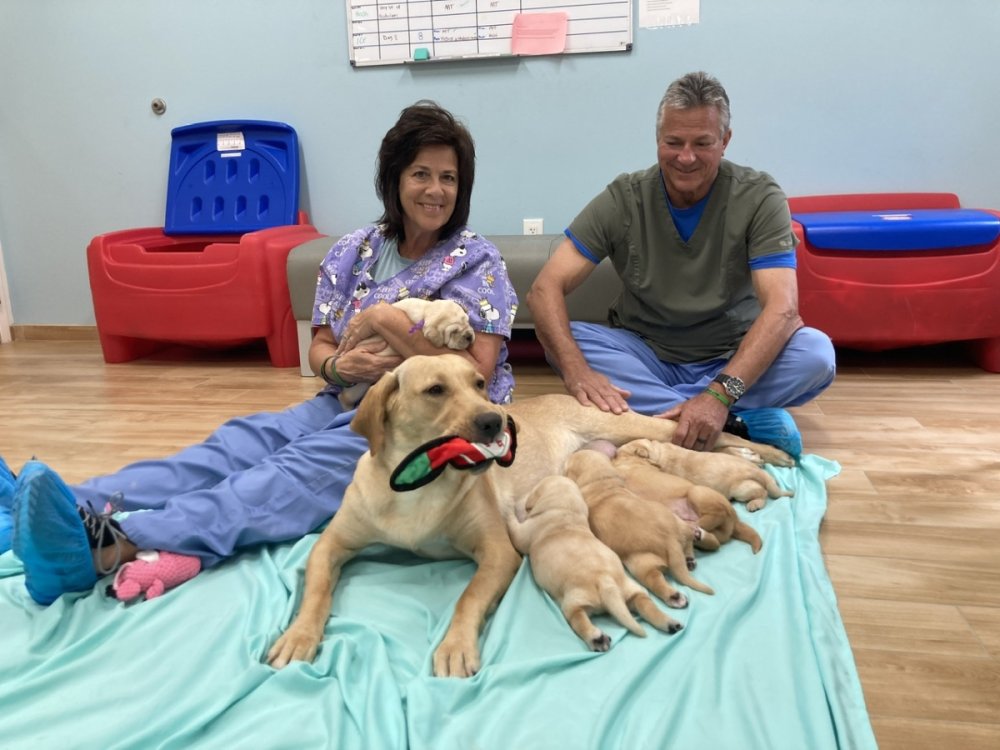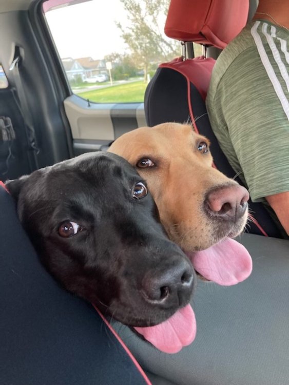 3. Ebony is the black Lab - 12 months. Maggie-Lou is the yellow, 22 months. Both are Southeastern Guide Dogs. Ebony is a Guide-Dog-In-Training. Maggie-Lou is used for breeding Guide & Service dogs.