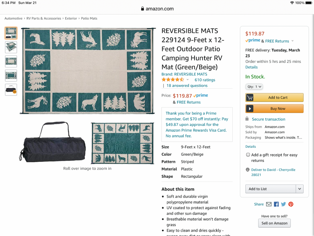 11. Not to over wayyyyyy over think this topic as to we, or me, or he, or she..😂 enjoy the exterior carpet that suits your needs best! So many choices! Just enjoy traveling and camping!
