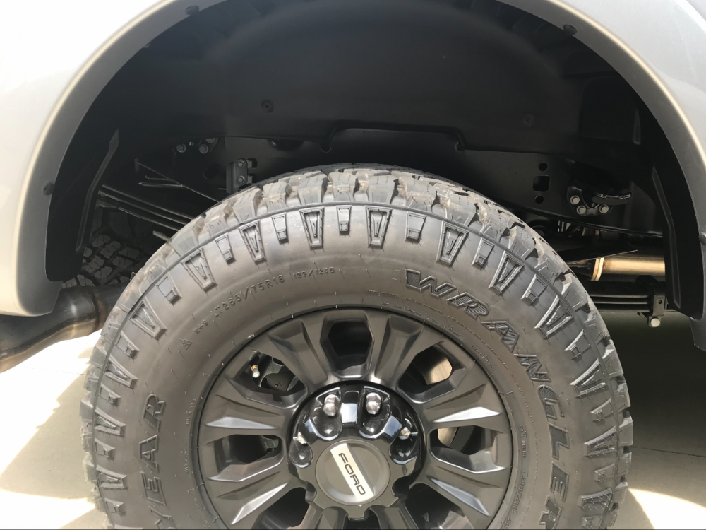 Airedales - They are 285/75R18 Goodyear Wrangler Duratracs and they did come stock with the Tremor pkg and includes a full size Duratrac spare. 👍🏻I did a bit of research on tirerack.com and they have overall pretty decent ratings. Likely due to a more aggressive design tread - no mileage warranty. With just over 2k on them so far I like the way they handle and ride, no complaints. With additional miles they may or may not produce a little road noise, we’ll see. The Tremor cabin is really quiet so little too early to tell. To my surprise they do NOT hold a lot of gravel in the tread due to tire larger lug width and design. The down side is when a larger stone does get tread seated and tossed it can potentially be a windshield cracker for a vehicle following. I periodically check my tires/tread and unseat any stones when driving on gravel roads. I also purchased the Discount Tire insurance coverage for these tires ($187) since they run approx $320 per tire. Essentially coverage includes a balance and rotation anytime I need it and a non prorated replacement with a brand new tire if DCT cannot repair the tire. For the life of the tires, not a bad deal. I like DCT as they hand torque all lugs when completing the B&R. Hope this helps! -Patriot