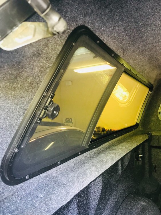 Bill, Geat question. The black aluminum divider you see actually separates the front topper glass from with an internally hidden hinged rear window glass which is screened for ventilation. I really like this design as it allows for great airflow/circulation in the topper while stationary or rolling down the super slab. Inside pic shows the system that allows for turning the opening and closing knob for the screened window. The window can be adjusted to what ever opening with you choose and they stay that way while traveling if you wish. No sloppiness in the hinge or handle closing mechanism. I also really like the hidden hinge system on the rear access window over the tail gate. Naturally personal taste, but it aesthetically looks cleaner on the overall fit and finish.