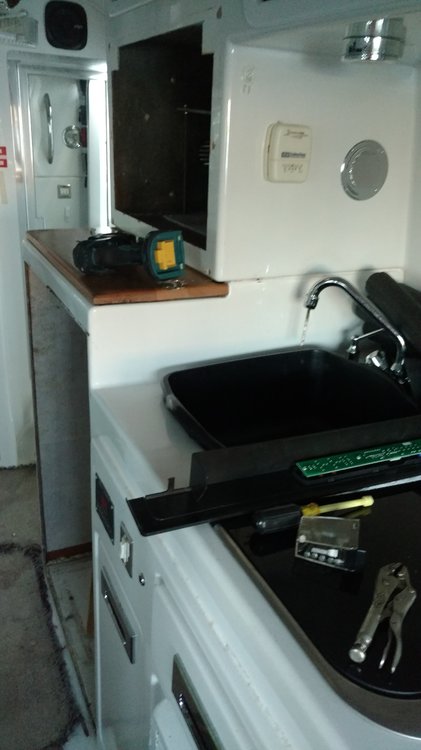 So, Paul was very busy today. Took out the old microwave that died from lack of use, years ago. Since we almost never camp with power, I want to replace it with a storage cabinet. Has anyone done this as a retrofit? Or at purchase? Looking for ideas. I'd like to keep the 110 outlet, but not necessary. We'll pull the rest of the fitting bits and threaded rod, etc from the original install of the unused microwave., and "archive" them somewhere in the garage. The space occupied by the microwave is huge compared to the storage inside the actual microwave cavity. Kind of excited to create a new dish locker. Or something.. Originally, I had hoped to replace the microwave with s mini oven, but none of the European models that fit the space have even fair reviews. So, cabinet it is. Perhaps convert to an oven in five or ten years. We'll have a spare gas connection, as we are also replacing the three way fridge with a danfoss compressor electric refrigerator. Sherry