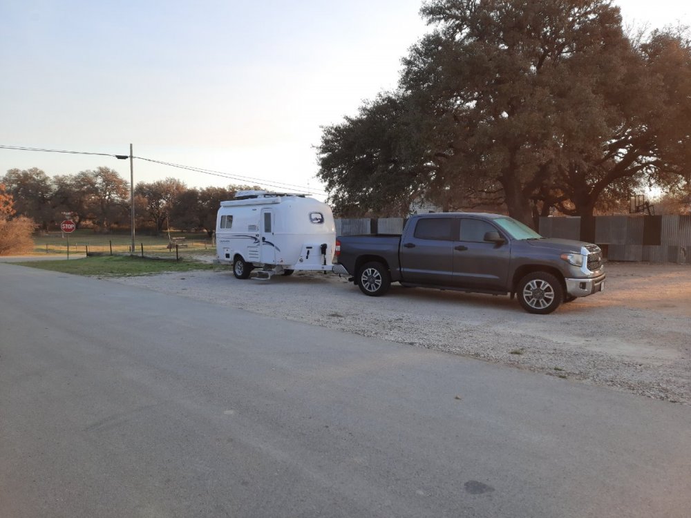 UPDATE - Returned home after first trip with wife and teenage daughter. It was intentionally an easy trip. Drive about 200 miles total over 3 days. I highly recommend an easy first trip for rookie RVers (like us). This was a great way to get my (semi-reluctant spouse) to enjoy a weekend in the Ollie. The first night we visited our family at their ranch near Llano, TX. The second night we stayed at a Harvest Host in the middle of Johnson City, TX and we met up with old friends. Great food and conversation all weekend. Overall, the trailer is great. Today, I will work to repair 3 minor "issues" with the trailer, but I will search the forums and start new threads if I have questions: (1) need to check the electric AC connection on my Norcold fridge (won't work on AC power when plugged in; does fine on propane); (2)aAutomatic gate closed on the trailer scratching the fiberglass (need to try to buff it out; and (3) mirrored bathroom door has a crack. I don't think any of these are major repairs, but if I have questions, I'll post on the forum. @John E Davies & @topgun2 - thanks for the advice about sterilizing the fresh tank. I will do that today. We don't use the fresh tank for drinking water, but, obviously, want the fresh tank to remain "fresh". @Mike and Carol - I will defintely disconnect my batteries before storage. Thank you. @Time2Go! - Our HH was the 290 Vinery in Johnson City, TX. This is a historic hill country town on HW 290 (the TX wine country trail). Overall, our stay was great. The owners and their adult kids were very casual and relaxed. They have a large variety of wines, including many from outside the region. There are no hookups. It was a busy winery on Saturday afternoon, but after it closed (around 6 pm), we were there alone. The best part about this HH is the location. You are a short 3 blocks from the town square. This would be a great stop during the holidays with the courthouse and surrounding grounds lit and decorated. We would stay there again. I don't have any great pics of a beautiful hill country sunset or perfectly ripe grapes, but, because you asked, here is the rig at the 290 Vinery. -