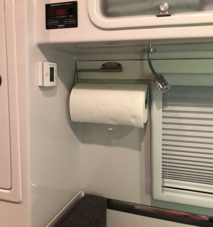 Thanks guys! I forgot to check back & this is how we installed the paper towel holder. John cut a 2 3/4" wide x 22" long x 3/4" thick board. He round it on the back corners so it would slide between the window facing and curve in the wall of the Oliver wall above the window. He painted it white. In our 2021 it is across from the kitchen sink in the dining nook. Best part about this installation is it's easily removable as there is no tape, screws, etc as the board simply slides in the space.