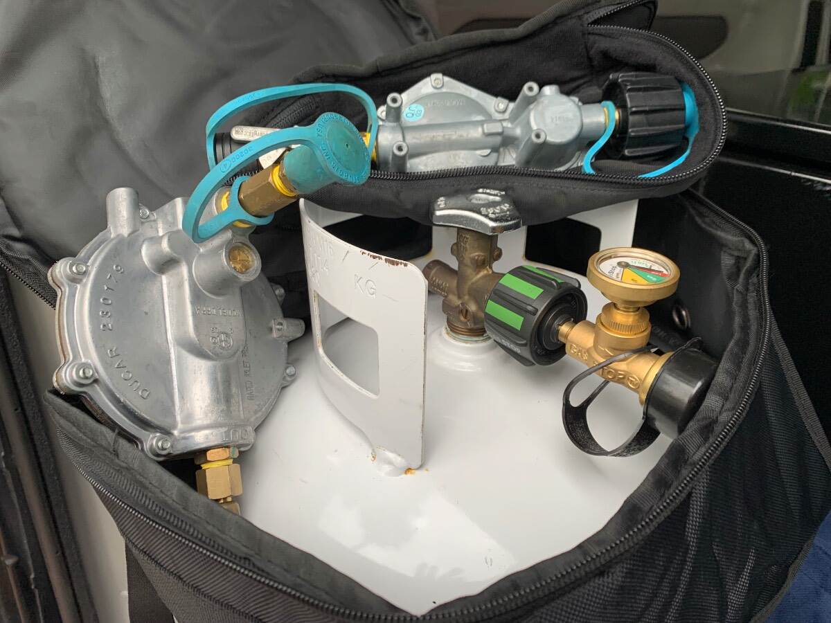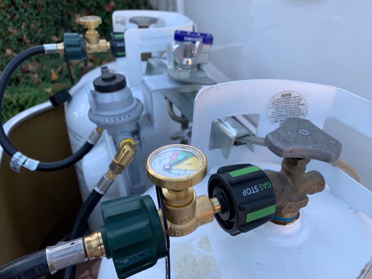 A more expensive, but much better option. I have these on the two mounted 30# tanks and a spare 30# tank carried with; the gauge accurate, purge feature very useful and emergency shutoff essential!