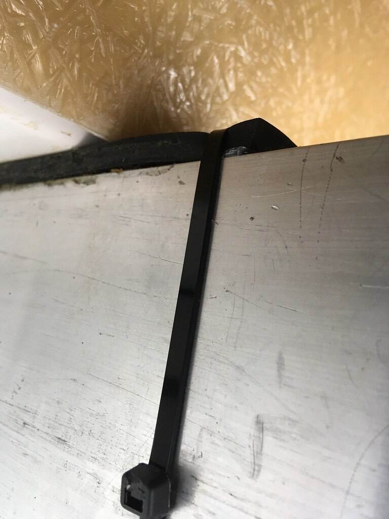 I’ve had rubber migration at the steps, A-frame and undercarriage cross beams; inspection of these areas is part of my routine maintenance. I have used slight pressure on the underbelly to provide necessary clearances by way of a jack and a 2x6 to distribute force on the fiberglass, then clamps used to further restoration. The strips of rubber at the cross beams have a screw at each end and thus, will not fall out completely. I was able to use zip ties at the A-frames where the rubber protrudes beyond the chassis to keep it in place. Unlike the aforementioned cross beam rubber strips, the step strips have no screw securement and can come out. The ones shown in the beginning photos at each side of the steps are the most difficult to reposition and secure. -