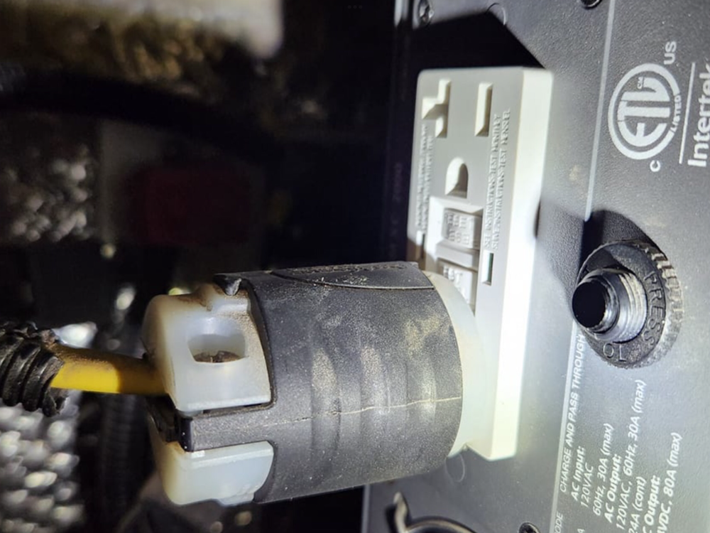 18. I have read where you recently stated this TS is not suited for use with the Xantrex 3000. I would think it could as long as you don’t exceed 20A. I read a review on Amazon wherein one was used when on 30/50 amp shore power for three auxiliary outlets without issue, and subsequently when on inverter; however, the size of inverter was not disclosed. The following pic was provided me upon request by another owner prior to my install; the installation is very straightforward. Since the plug cable on the TS20A is very short, I made an extension from the formerly unused outlet on the Xantrax-mounted GFCI receptacle to a remote duplex receptacle for purpose of creating additional outlets for said TS. Here are pics of the inverter’s GFCI with a plugged cable leading to the microwave, and the added duplex receptacle box installed.