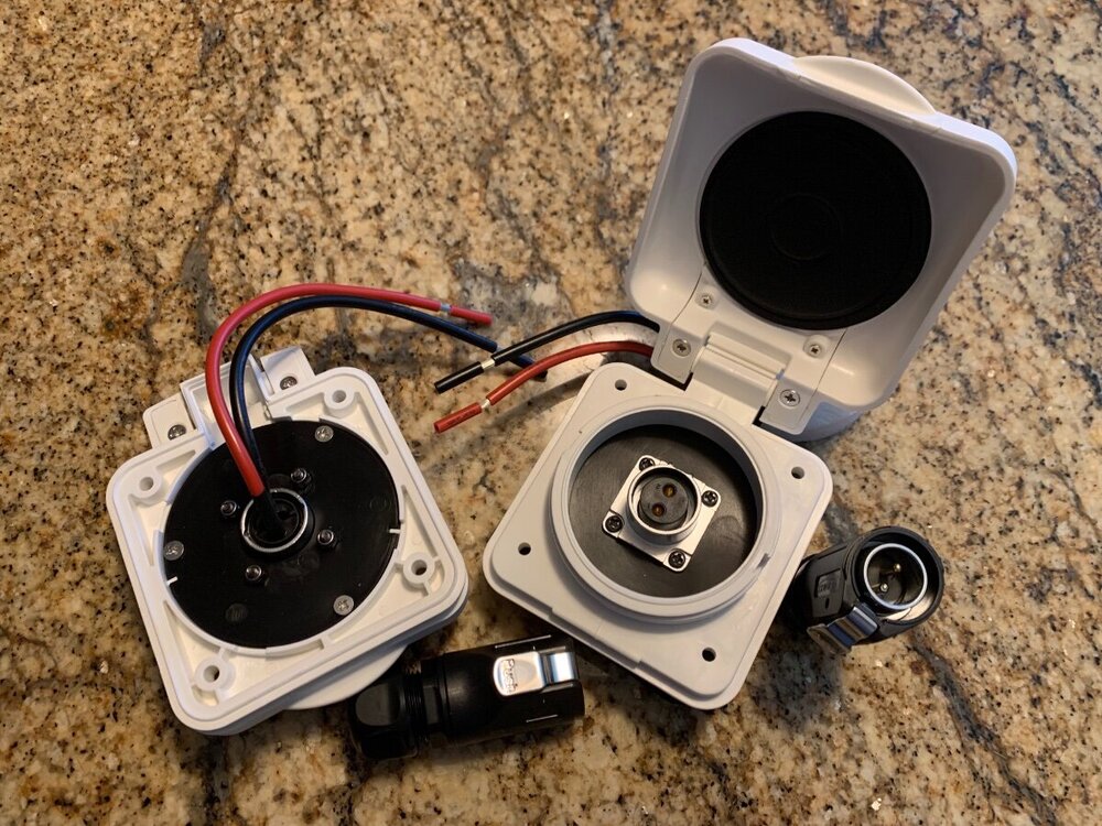 I actually bought these and returned them prior to buying the Furrion solar ports. Although these flush mount AP ports came with a rubber protective cap for a water tight seal when not in use, there was no moisture protection when in use. The Cnlinko connectors are said to be waterproof and the Furrion lid will further aid in shedding water.