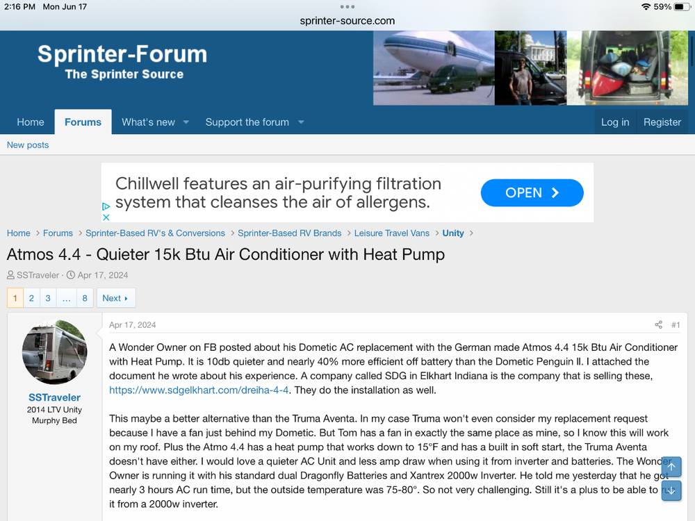 Understood, but everything is bigger in Texas, including the heat and humidity! Waiting to hear from current installers about unit size in a few Sprinter Class B motorhomes, which appear to have comparable interior space as an Oliver, as well as other performance measures.