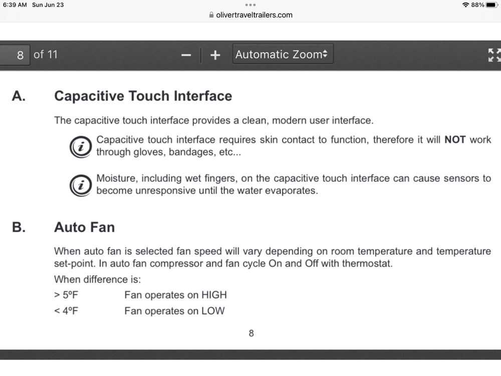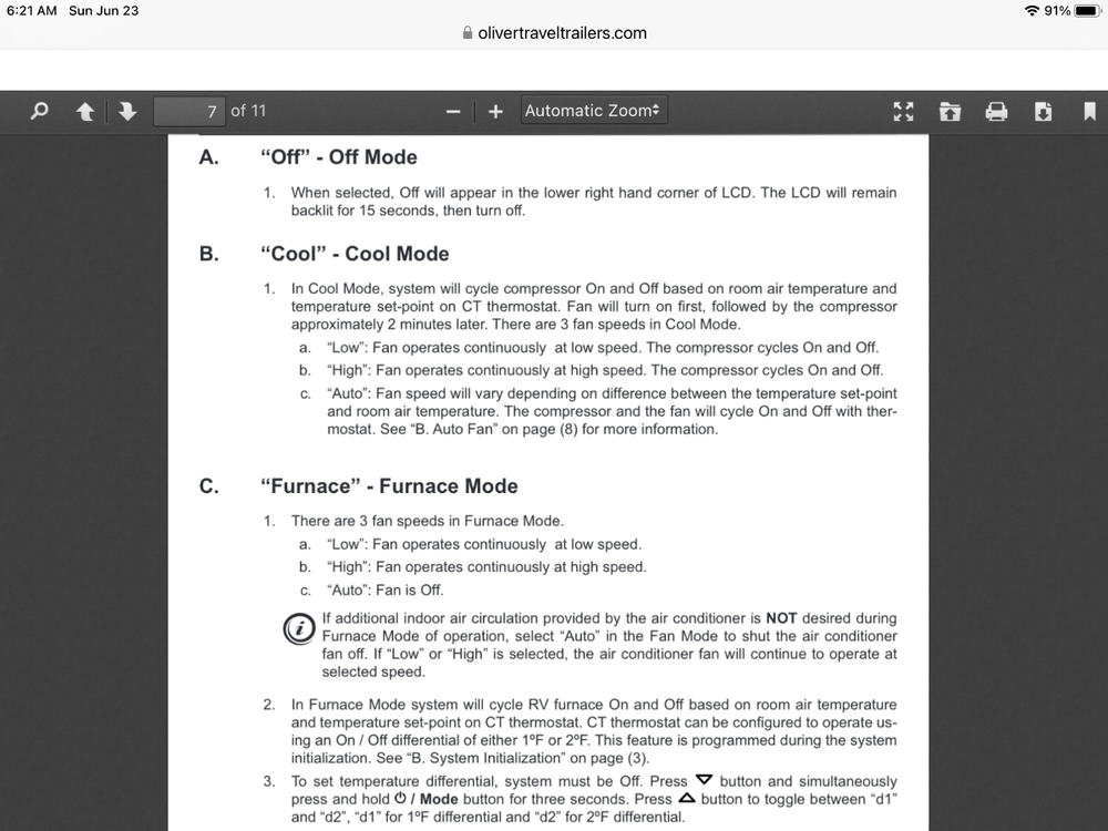 Just watched a video on installation of a SoftStart on an Atmos 4.4, necessary to resolve an inherent issue regarding LRA. Also, a screenshot of the dual squirrel cage fan blower in the Atmos for higher airflow, and sound reduction both from outside and inside the RV; 4 fan speeds, including Sleep mode. A few other notes on the Atmos 4.4: (1) condensate drains on the rooftop, (2) the R32 refrigerant requires a lower pressure, thus more energy efficient, and (3) 12,000 BTU heat pump.