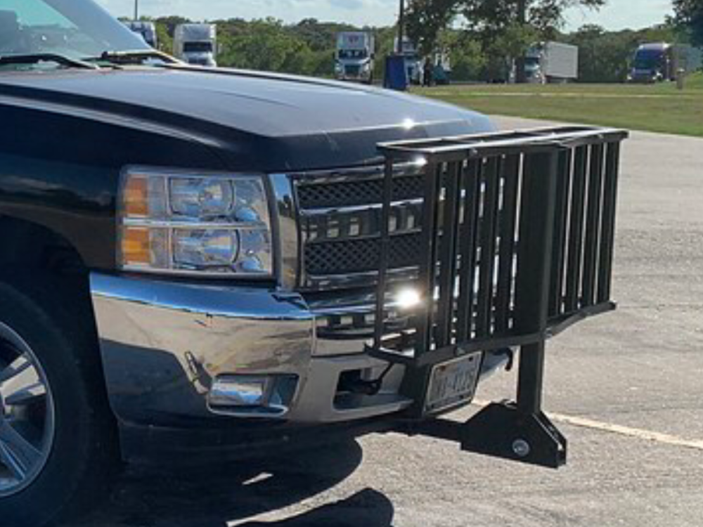 23. I originally bought this 2” folding cargo carrier for the front of my TV, but ended up replacing it with a bike rack when our ebikes came into play. Often thought about installing a 2” receiver on the rear of the Oliver to make use of this carrier, as needed. The hinge is very solid and stable; never noticed excessive movement from my forward-facing vantage point.